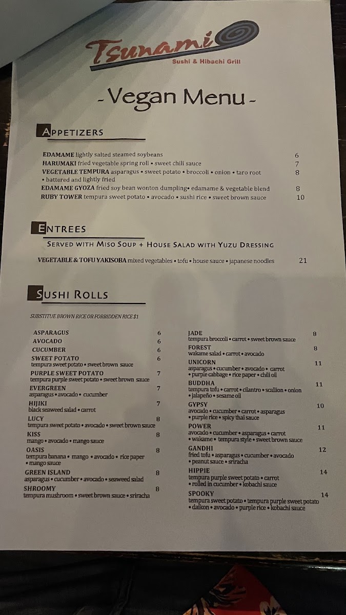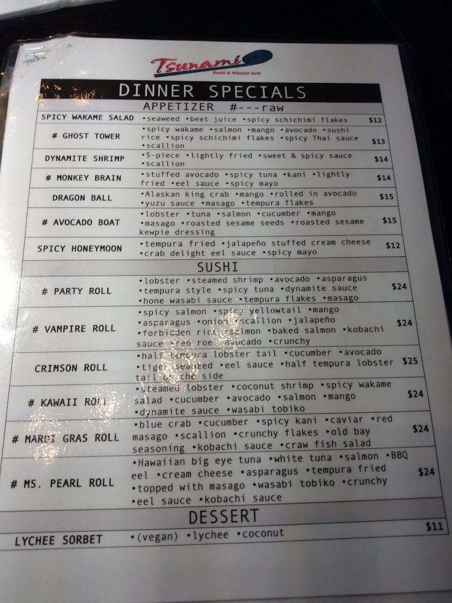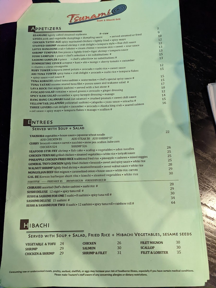 Tsunami Sushi & Hibachi Menu